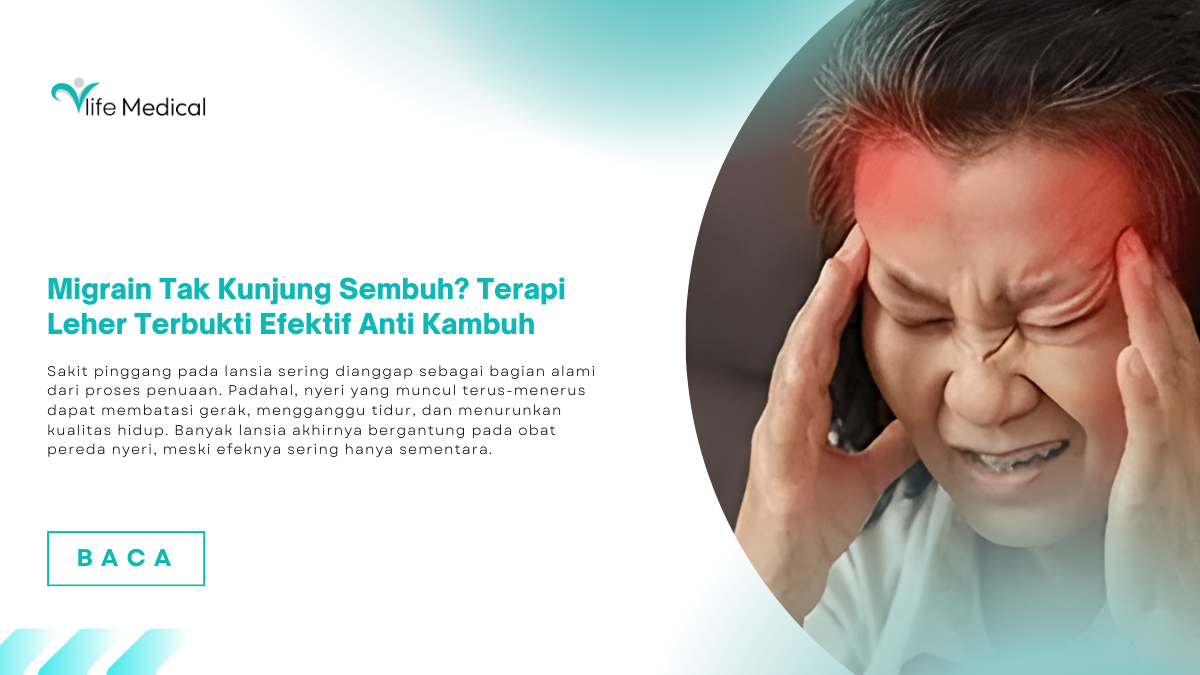 Sebagai klinik Spine Care dan rehabilitasi medis, Vlife Medical menangani keluhan migrain yang berkaitan dengan masalah leher melalui pendekatan non-operatif.
